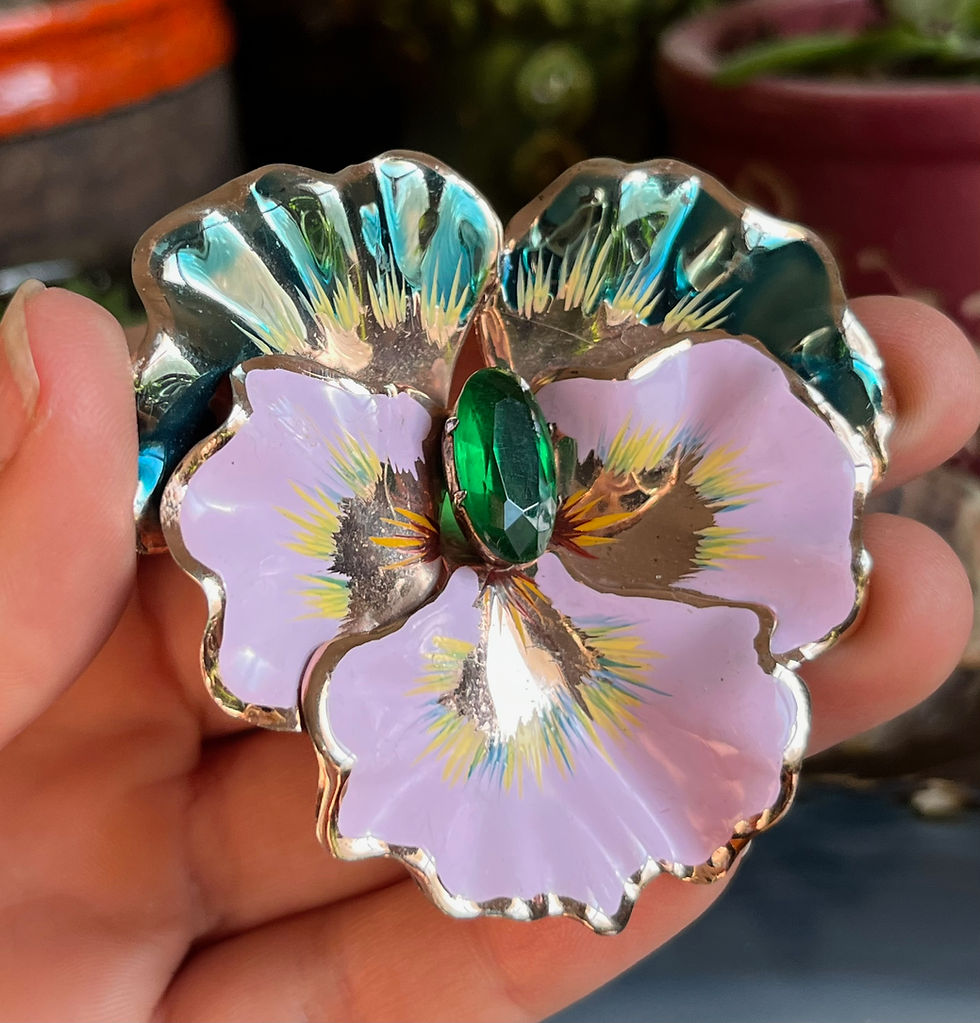 Vintage Coro Rose Gold Vermeil Sterling Silver Enamel Rhinestone Pansy Brooch