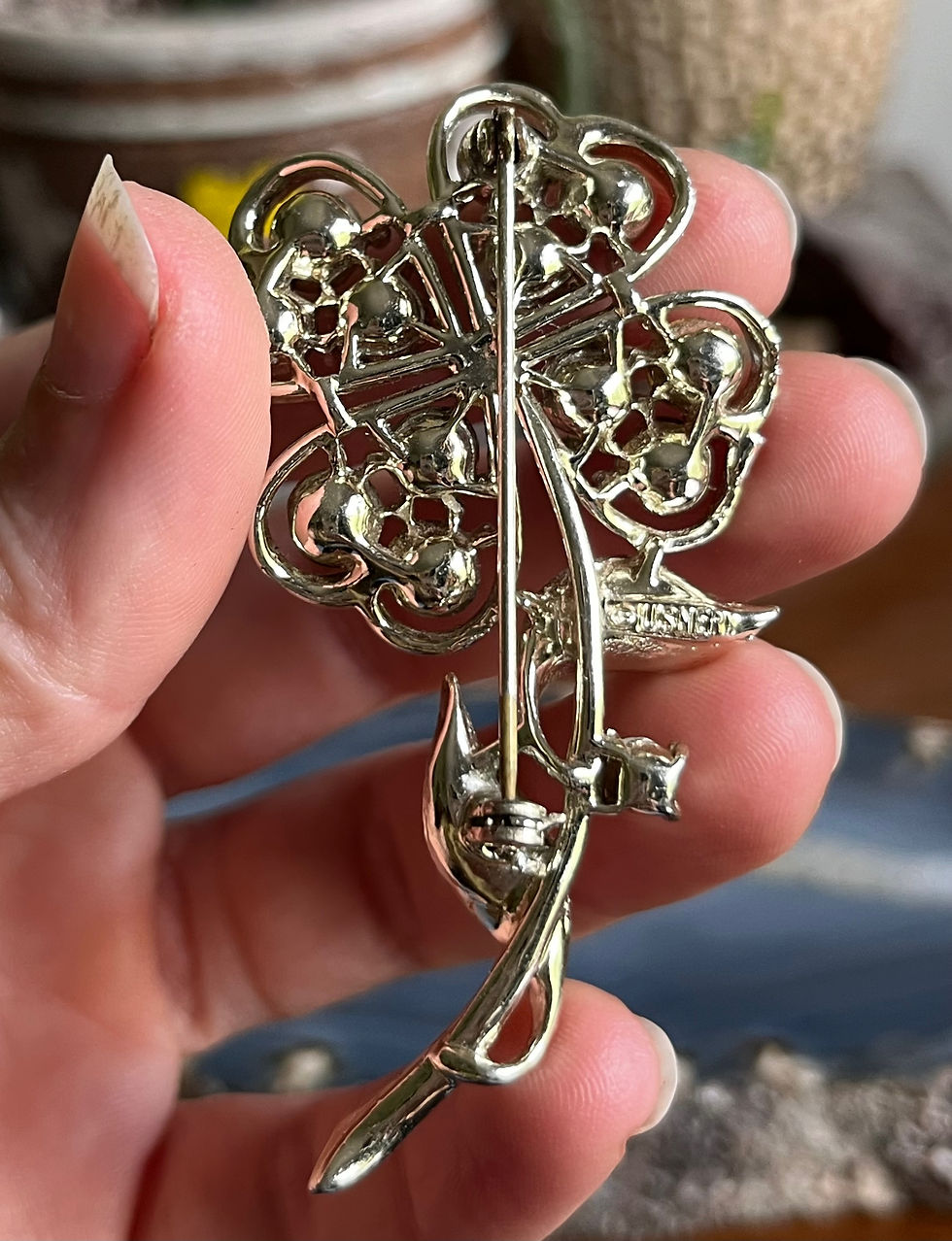 Vintage Lisner Topaz Rhinestone Shamrock Flower Brooch